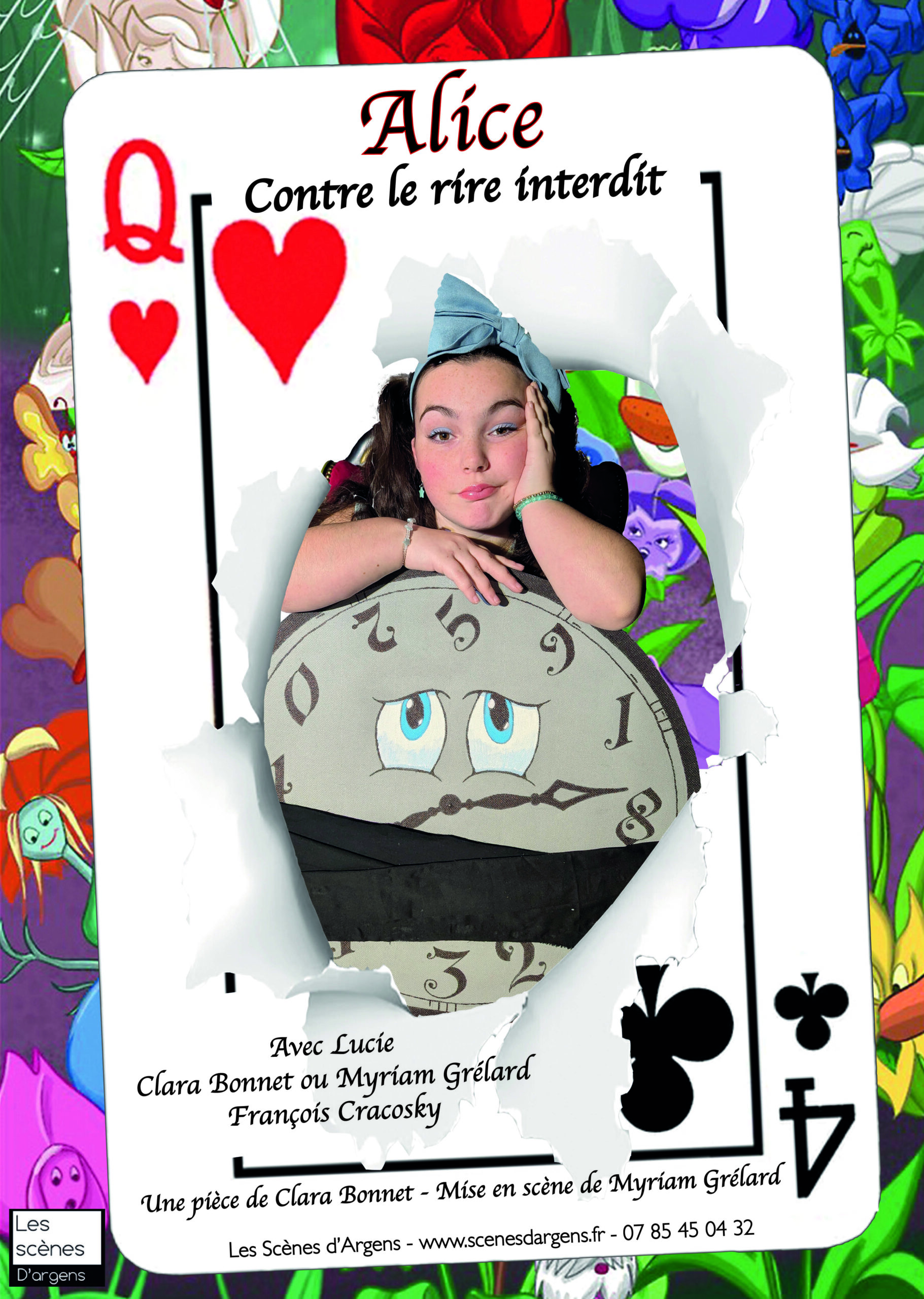 Synopsis Dans ce deuxième volet des aventures d’Alice, le rire a disparu : la Reine de Coeur l’a interdit par décret royal. Le Chapelier est condamné à mort pour avoir ri avant sa Majesté, et Alice doit tout faire pour sauver son ami. Entre procès farfelu, jeux de mots absurdes, imitations de la Reine et participation active des enfants, Alice affronte la mauvaise humeur royale et redonne le rire au Pays des Merveilles. Une pièce drôle, interactive et pleine de fantaisie, qui célèbre le pouvoir du rire et de l’imagination.